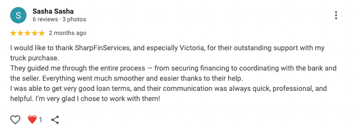 Our Company has been financing commercial equipment for over a decade, serving 5,000+ satisfied clients across the U.S. We specialize in custom lending solutions tailored to each business, taking into account your goals, cash flow, and unique circumstances. Our team works directly with top banks and lenders to secure the most competitive approvals, rates, and terms available. If you want fast, reliable, and flexible financing for trucks, trailers, or any other commercial equipment, Sharp Financial Services, LLC is the partner you can trust.
